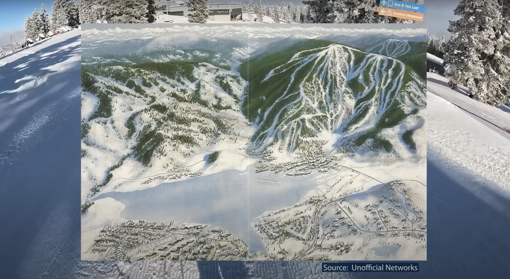 Finally, we want to cover what was probably the last serious attempt to build a true independent destination ski area that actually made it to reality, though whether it truly succeeded is heavily up for debate. Idaho’s Tamarack Resort opened in 2004, marking probably the most ambitious ski resort development since the 1980s. The resort cleared regulatory hurdles largely by building on state-owned land rather than federal land, and it debuted with just over 1000 acres, making it bigger than most local hills, though still smaller than most destination resorts. In addition, the resort had an extensive base village planned out.