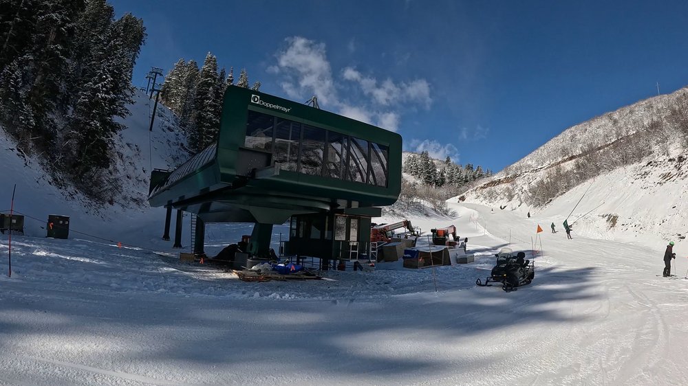 The unfinished lift terminal of the Galena Express at Deer Valley this February. Later on this season, quad chairs were added to the line.
